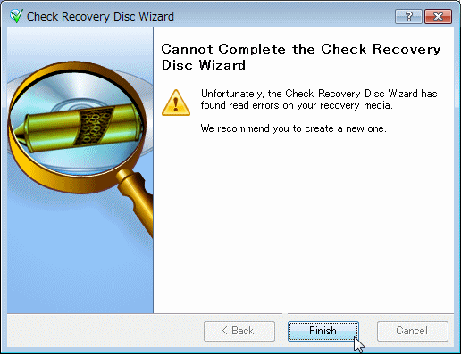 せっかく Bootable Recovery Diskを作って「イザ」という時に備えても、それが使えないディスクでは何の意味もない。書き込みが終わったら続けて、「Tools」>「Check Recovery Disk」で BDディスクを検査しておくことをお勧めする。(但し書き込みよりもかなり時間はかかる:35GBイメージディスクで 8H over!)