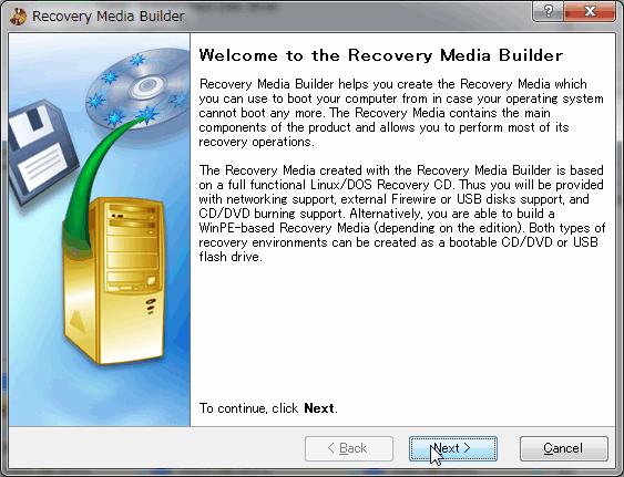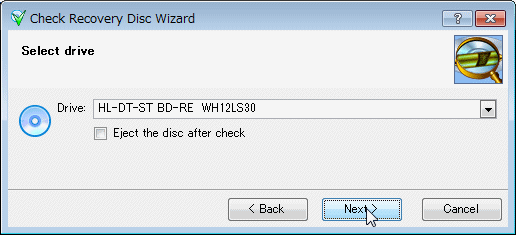 「Check Recovery Discs」を実行するとウィザードが立ち上がる