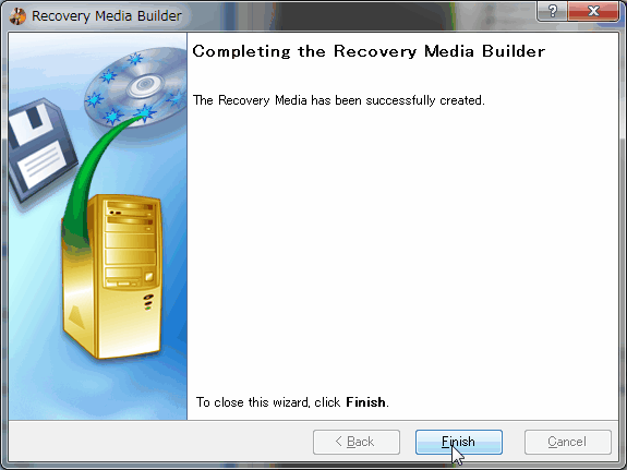 Paragon Backup & Recovery 2011/2012 は ブルーレイディスクの書き込みに対応していないのか、DVDには直接書き込めるが BD-Rなどに書き込もうとすると失敗する。そのため以下では一旦 ISOファイルを作成してからそれを BD-Rに書き込む手順を説明する。