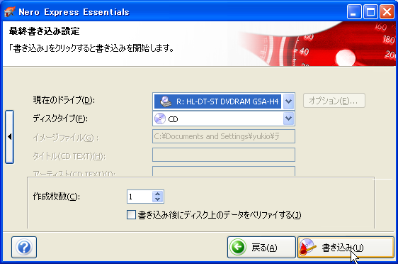 XPなどでは、O/Sが CD-Rなどの書込みを直にサポートしていないのでディスク書込みツール(Neroなど)を使って CD-Rに書き込むことになる。