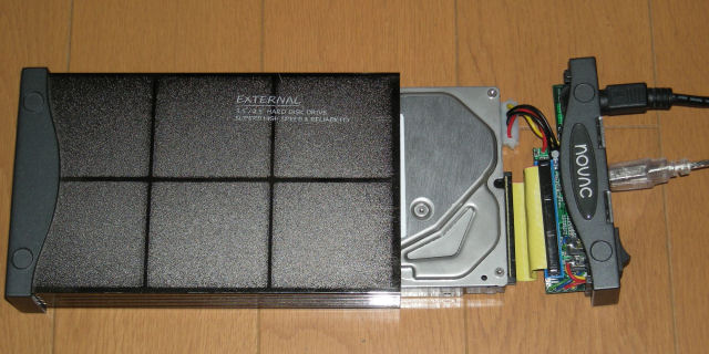 外付けHDDケース(ノートPCやコンパクトタイプのHDDが1台しか搭載できないPCでは必ず必要。USBインタフェースなど使用するPCのインタフェースと互換性のあるもの。2台以上HDDが搭載できるPCの場合は、内蔵で行った方が取り付けは面倒だが、コピー速度は早い。)