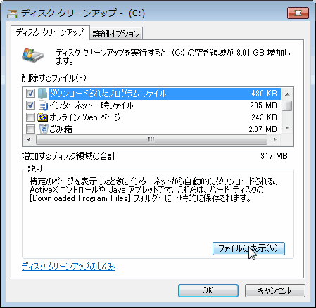 デフォルトでチェックされているファイルは、削除しても問題ありません。