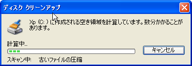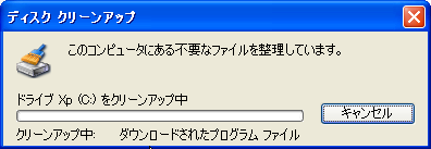 OKボタンを押すと【クリーンアップ中】の表示が出て、クリーンアップが始まります。