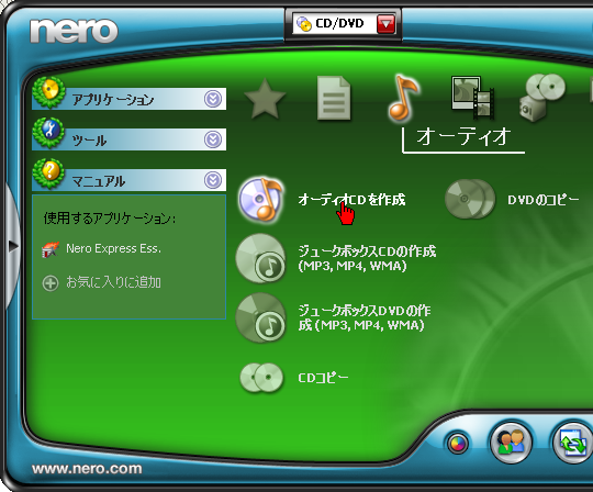 CDを買ったり、音楽DVDを買ったり、iTunesなどからダウンロードしたり、デジタル放送の音楽番組を録画したりと、音楽の入手方法も雑多になってきました。それらの音楽が、DVDになっていたり、iPodに入っていたりして、いざ車のナビ付属のCDデッキで聞こうと思うと意外と聞けなかったりします。折角自分で買ったり録音した音楽ですから、出来ればナビでもCDラジカセでも聞けた方がいいに決まっています。と言うことで、今回は各種のソースからCDを作成する方法です。あるいは全ての曲が CDに入っていても聴きたい曲が複数の CDにまたがっている場合など、ナビは運転中にいちいち入れ替えるのは面倒ですから、複数のCDから気に入った曲を寄せ集めて一枚のCDにするということもアリですね。更に、大切なオリジナル CDを車の中のような高温・強紫外線の環境に持ち出したくないという場合にも知っておいた方がいい方法です。