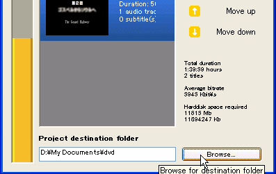 以上の設定が終わったら最後に、初期画面で右下端の「Browse」ボタンを押して、出力ファイルなどを書き込むために充分に空き容量のあるドライブのフォルダを指定する。 |