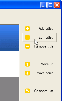 次に、右端のメニューから「Edit title..」を選ぶとタイトル毎にパラメータの編集が出来る。(右図)