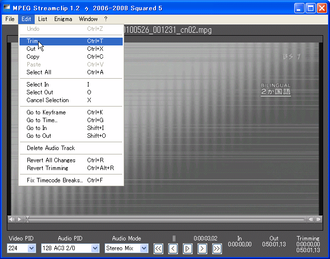 MPEG streamcut というフリーウェアを使ってみた。
