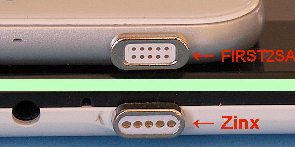 私が探した時点で Lightning用と マイクロUSB用を同一ブランドで販売していたのは唯一 Zinxというブランドだけだったが、商品説明のどこにも マグネットケーブルの互換性に関しては記載がなかった。しかし写真で見る限り形状は同じに見えたので Zinx の Lightning コネクタのセットと マイクロUSBのセットを両方購入してマグネットケーブルの互換性を確かめてみた。結果は以下の通り。