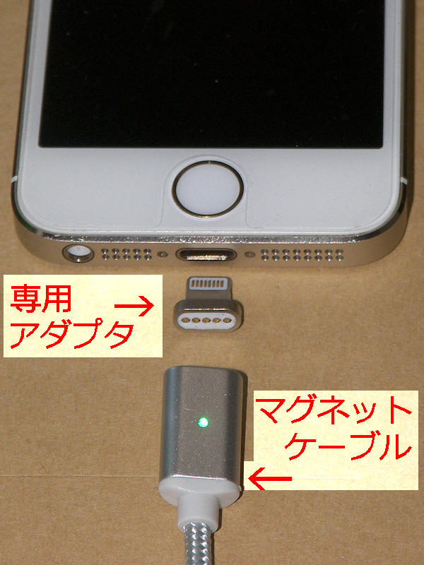 まぁ普通、アダプタとマグネットケーブルはセットで購入して使うからマグネットケーブルが共用できてもあまりメリットはないと思うかもしれないが、一家の中で iPhoneと アンドロイドを両方使っていたり、私のように 自分はアンドロイドスマホを使用しているが出先の家では iPhoneを使っていたりする場合、共用できると便利な場合もあると思われる。