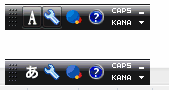 そして、IMEバーが下図のように青いマークのアイコンに変化する。(上が非変換時、下が変換時)