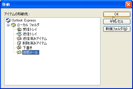 「フォルダ名」に例えば「迷惑メール」と入力して「OK」ボタンを押す。