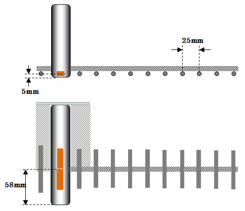 各エレメントの間隔は 25mm、長さは 導波器側が放射器(全長 45mm)よりも若干短くして 40mm~43mmくらい、反射器は50mm程度とした。それぞれの長さはアルミ線をニッパで切断して端面をヤスリがけしたのでアバウト。並べて立ててみて、長い方から本体近くに接着した。