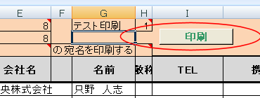 ⑤ 「印刷」ボタンを押す(「住所録」シート I2セル上)