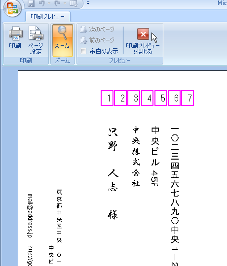 ③ 住所を一通り入力したら、試しにプリントしてみます。