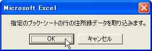 データの取り込みを確認するダイヤログが表示され、「OK」ボタンを押すと取り込みを開始します。