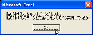 名前データの入力されている行に貼り付けようとすると警告が表示され取り込めません。上書きしたければ、貼り付ける行以下はすべてのデータを一旦削除してからボタンを押します。
