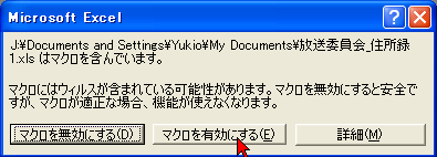また、当然ながら、この住所録の差し込み印刷には Microsoft Office の Excelが必要となり、マクロを実行することが必要になります。