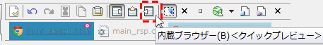 カスタムツールバーに表示されたアイコンのうち「内部ブラウザ」のアイコンが他のアイコンと反対で、押されたアイコンの時に内部ブラウザ表示が OFF状態(トグルボタンなので、押せば反対状態になるので、どうでもいいと言えばいい問題だが) |