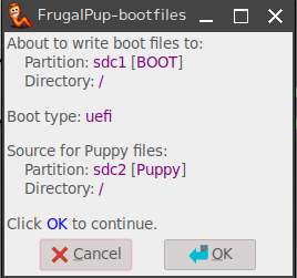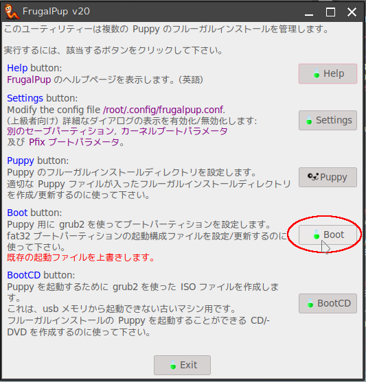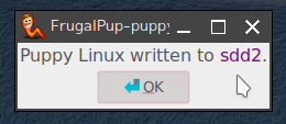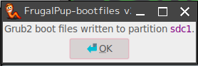 ブートローダーがインストールされた。 OKボタンをクリックすると、図-15の FrugalPupインストール画面に戻る。