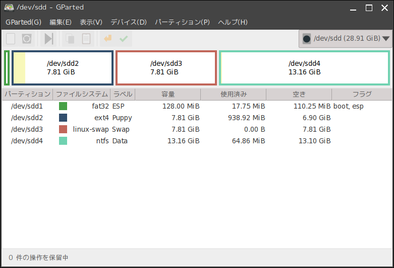 以上でPuppyの実行ファイルは全てターゲットUSBの第2パーティションに書き込まれたが、