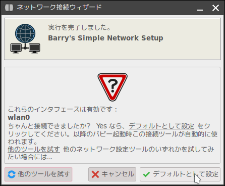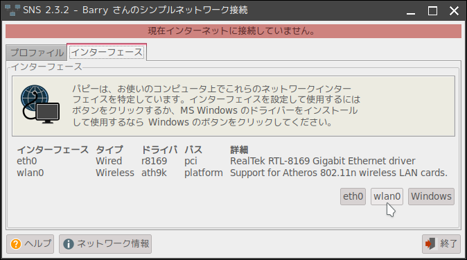 「Barry さんのシンプルネットワーク接続」が表示されるので、「wlan0」を押す。