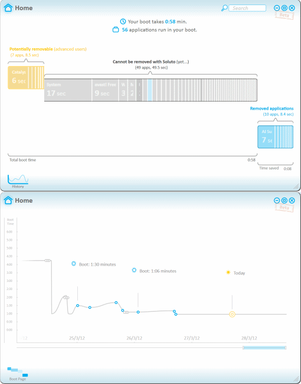今回は、同様の目的で BootTracerというツールも一緒にインストールしてみたが、私の場合 圧倒的に Solutoの方が役に立った。